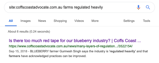 Let's use those phrases to finally discover an article online via the Coffs Coast Advocate search: